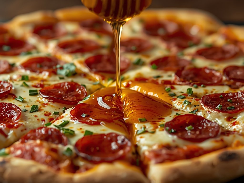• Drizzle hot honey or chili honey over pepperoni or cheese pizza