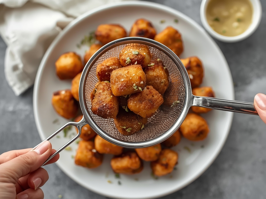 While the nuggets are in the air fryer, mix up a tiny “dusting blend” in a small ramekin. It’s just two ingredients: garlic powder and a pinch of powdered sugar. The garlic powder adds a savory depth that reheated food often lacks, and the powdered sugar highlights that sweet note in the breading without making it taste like dessert.