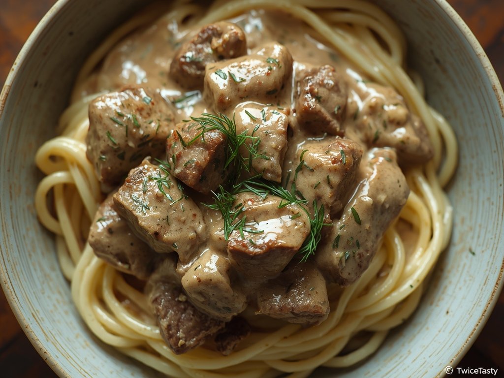 Once the onions are soft and the mushrooms have given up their ghost, it’s time to deglaze. A splash of beef broth is essential here—it brings back the “beefy” flavor that might have faded. But the real magic is the sour cream or crème fraîche. Take the pan off the heat. This is crucial. If you boil sour cream, it will curdle and separate, turning your beautiful sauce into a greasy, oily mess. Stir in the cream off the heat, letting the residual warmth of the pan turn it into a velvety, pale gold sauce that clings to every strip of beef.