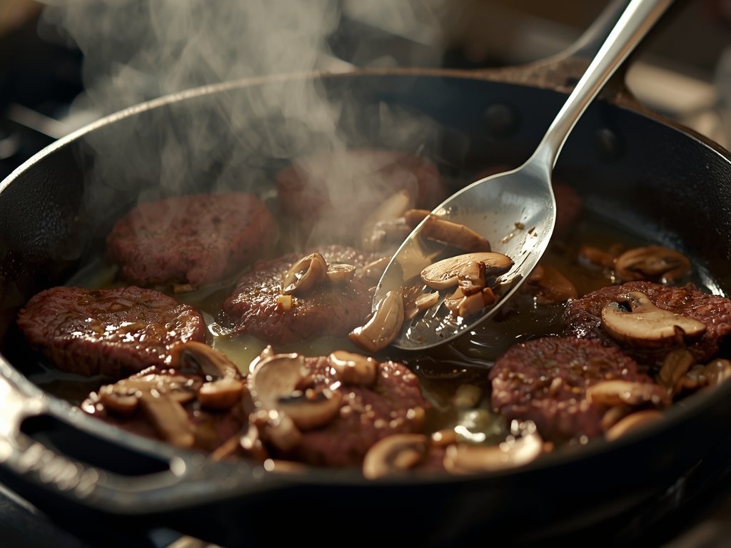 Start by trimming any hard, gristly bits off the patties—you don’t want surprises in your sauce. Then, slice the meat into thin strips. Don’t worry if it breaks apart; Stroganoff loves crumbles. Get a skillet hot—cast iron is great here. Add a little butter, because leftover burgers are often leaner than we remember by the second day.