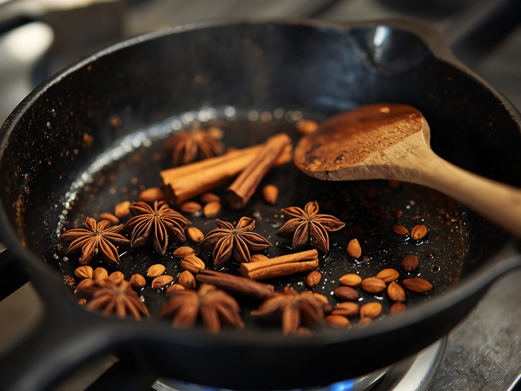 Step 2: Toast the Spices In a small dry pan over medium heat, add the star anise, cinnamon, cloves, and coriander seeds. Toast for 2 minutes until fragrant. You can put these in a tea infuser or cheesecloth bag for easy removal, or just strain them later.