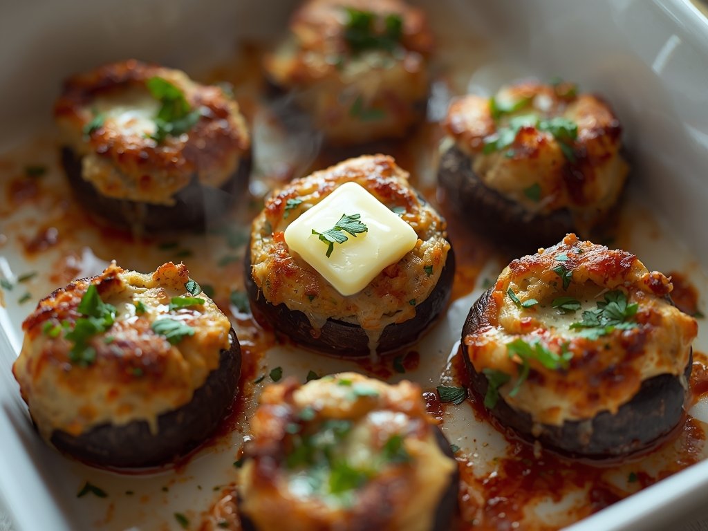 As the mushrooms heat up, that butter melts. Instead of the breadcrumbs trying to find moisture in the mushroom, they soak up this fresh fat. It bastes the filling from the top down. It lubricates the dried-out breadcrumbs and makes the whole interior incredibly creamy again. It turns the “reheated” texture into something that tastes freshly assembled.