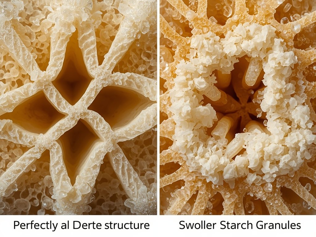 To understand frozen pasta salvation, you need to understand starch gelatinization. Raw pasta is tight, dry, organized. Boiling water rushes in, starch granules absorb liquid and swell, then burst—creating that soft, edible texture we call “done.” Al dente means you’ve stopped this process early, leaving some granules intact and structural.